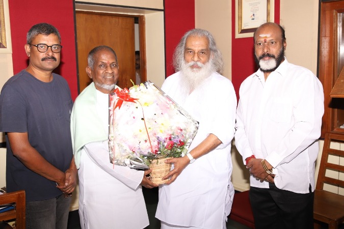 ஜேசுதாஸுக்கு பூங்கொடுத்து இளையராஜாவும் இயக்குனர் பாபு யோகேஸ்வரன் மற்றும் g.சிவா ஆகியோர் வரவேற்றனர்..