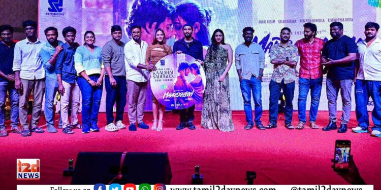 SR PRODUCTIONS சார்பில் B.ஜகதீஸ் தயாரிப்பில், ரங்கோலி பட இயக்குநர் வாலி மோகன் தாஸ் இயக்கத்தில், மலையாள நடிகர் ஷேன் நிகாம், கலையரசன், நிஹாரிகா நடிப்பில், புதுமையான ஆக்சன் டிராமாவாக உருவாகியுள்ள திரைப்படம் “மெட்ராஸ்காரன்”. விரைவில் திரைக்கு வரவுள்ள இப்படத்தின் இரண்டாவது சிங்கிள் “காதல் சடுகுடு” பாடல் வெளியீட்டு விழா, தனியார் மாலில், மக்கள் முன்னிலையில் படக்குழுவினருடன் திரைப்பிரபலங்கள் கலந்து கொள்ள, சிறப்பாக நடைபெற்றது.
