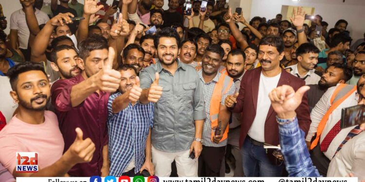 துபாயில் உள்ள தொழிலாளர் முகாமை பார்வையிட்ட முதல் நடிகர் கார்த்தி: தொழிலாளர்களுடன் சேர்ந்து தீபாவளி கொண்டாட்டம்