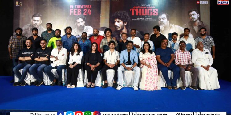 HR Pictures சார்பில் ரியா ஷிபு Jio Studios உடன் இணைந்து வழங்கும், நடன இயக்குநர் பிருந்தா இயக்கத்தில், க்ரைம்-ஆக்சன் கலந்த த்ரில்லர் படமாக உருவாகி இருக்கிறது “தக்ஸ்”. ஹிருது ஹாரூன், பாபி சிம்ஹா, ஆர்.கே.சுரேஷ், முனிஷ்காந்த், அனஸ்வர ராஜன் மற்றும் பல முன்னணி நட்சத்திர நடிகர்கள் நடித்துள்ள இப்படம் பிப்ரவரி 24, 2023 அன்று உலகம் முழுவதும் திரையரங்குகளில் வெளியாகவுள்ளது. இதனையொட்டி படக்குழுவினர் பத்திரிக்கை ஊடக நண்பர்களைச் சந்தித்தனர்.