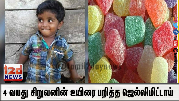 4 வயது சிறுவனின் உயிரைப் பறித்த ஜெல்லிமிட்டாய்…