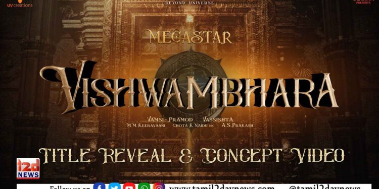 மெகாஸ்டார் சிரஞ்சீவி, வசிஷ்டா, UV கிரியேஷன்ஸ் – இணைந்து வழங்கும், கற்பனைக்கு அப்பாற்பட்ட மெகா மாஸ் ஃபேண்டஸி திரைப்படம் – மெகா156 #Mega156 விஸ்வம்பரா என தலைப்பிடப்பட்டுள்ளது!! அதிர வைக்கும் டைட்டில் க்ளிம்ப்ஸேவுடன் , 2025 ஆம் ஆண்டு சங்கராந்திக்கு இப்படம் வெளியாகும் என அறிவிக்கப்பட்டுள்ளது. !!