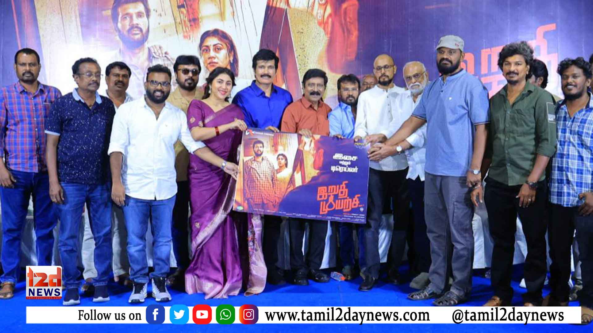 வரம் சினிமாஸ் நிறுவனம் சார்பில் தயாரிப்பாளர் வெங்கடேசன் பழனிச்சாமி தயாரிப்பில் நடிகர் ரஞ்சித் நடிப்பில் இயக்குநர் வெங்கட் ஜனா இயக்கத்தில் உருவாகியுள்ள ‘இறுதி முயற்சி’ எனும் திரைப்படத்தின் இசை வெளியீட்டு விழா சென்னையில் சிறப்பாக நடைபெற்றது. இந்நிகழ்வில் இயக்குநர்கள் ஆர். வி. உதயகுமார் – பேரரசு ஆகியோர் சிறப்பு விருந்தினர்களாக கலந்து கொண்டனர்.