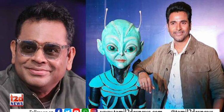 கேஜேஆர் ஸ்டூடியோஸ் சார்பில் கோட்டபாடி ஜே. ராஜேஷ் தயாரிப்பில் சிவகார்த்திகேயன் நடித்துள்ள திரைப்படம் ’அயலான்’. இப்படத்தை ரவிக்குமார் இயக்கியுள்ளார். ரகுல் ப்ரீத் சிங், யோகி பாபு, பானுப்ரியா, கருணாகரன் உள்ளிட்டோர் நடித்துள்ளனர். வேற்று கிரக வாசியை மையப்படுத்தி உருவாகியுள்ள ஃபேண்டஸி திரைப்படமான இது வரும் பொங்கல் விடுமுறையை ஒட்டி வெளியாக உள்ளது. இப்படத்திற்கு ஏஆர் ரஹ்மான் இசை அமைத்துள்ளார்.