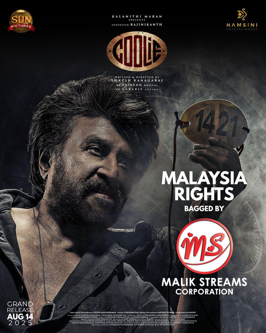 மாலிக் ஸ்ட்ரீம்ஸ் கார்ப்பரேஷன் சூப்பர்ஸ்டார் ரஜினிகாந்தின் கூலி திரைப்படத்தின் மலேசிய விநியோக உரிமைகளைப் பெற்றுள்ளது