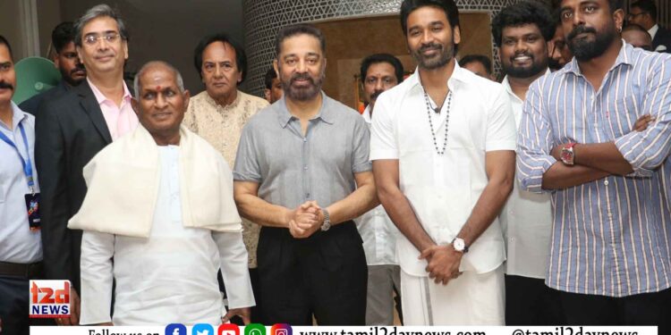 எனவே, இசைத்துறைக்கு பெருமை சேர்க்கும் இந்த இசைப் பேரறிஞரைப் பற்றிய தனது தனிப்பட்ட பார்வையை அருண் முன்வைக்குமாறு கேட்டுக்கொள்கிறேன். குணா திரைப்படத்தின் “கண்மணி அன்போடு காதலன்” என்ற பாடலில் இசைஞானி இளையராஜாவுடன் இணைந்து பணியாற்றியதை நினைவு கூர்ந்த கமலஹாசன் அவர்கள்.., அந்தப் பாடல் எங்கள் இருவருக்கும் இடையிலான காதல் மற்றும் உணர்ச்சிகளின் அழகான பரிமாற்றம் என்றார். இளையராஜாவின் வாழ்க்கை வரலாற்றை அழகாகவும் நேர்த்தியாகவும் சித்தரிக்க நடிகர் தனுஷுக்கு கமல்ஹாசன் தனது வாழ்த்துகளைத் தெரிவித்தார்.