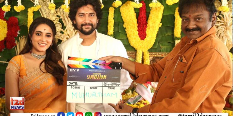நவராத்திரி திருவிழாவை முன்னிட்டு ‘சூர்யாவின் சனிக்கிழமை’ எனும் திரைப்படம் இன்று பூஜையுடன் பிரம்மாண்டமாக தொடங்கப்பட்டுள்ளது. இவ்விழாவில் தயாரிப்பாளர் டி வி வி தனய்யா படத்தின் திரைக்கதையை இயக்குநரிடம் ஒப்படைத்தார். முதல் ஷாட்டிற்கு தில் ராஜு கேமராவை சுவிட்ச் ஆன் செய்து தொடங்கி வைக்க, இயக்குநர் வி. வி. விநாயக் கிளாப் போர்டு அடிக்க, எஸ். ஜே. சூர்யா இயக்கினார்.ஒரு பிரத்யேக ஜானரிலான கதைகளில் மட்டும் நடிப்பதில் நானி தன்னைப் பொருத்திக் கொள்ளவில்லை. கதை மற்றும் அவரது கதாபாத்திரத்தின் தேவைக்கேற்ப அவரும் தன்னை மாற்றிக் கொண்டிருக்கிறார். ‘சூர்யாவின் சனிக்கிழமை’ படத்தில் நானி முரட்டுத்தனமான தோற்றத்தில் நடிக்கிறார்.