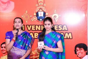 இன்று மிகவும் விசேஷமான நாள். இன்று இசைஞானி இளையராஜா அவர்கள் நானும், என் தங்கையும் பாடிய ஸ்ரீ வெங்கடேச சுப்ரபாதம் வெளியிட்டது எங்களுக்கு மிகவும் சந்தோஷத்தை தருகிறது. இந்த வெங்கடேச சுப்ரபாதத்திற்கு இசையமைத்தவர் மாண்டலின் ராஜேஷ் அவர்கள். இந்த வெங்கடேச சுப்ரபாதம் நிறைய பேரை சென்று சேர வேண்டும் என்பதுதான் எங்களுடைய ஆசை. நன்றி”.
