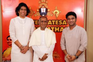 “சங்கீத உலகத்திலேயே மிகவும் உயர்ந்த பேரும் புகழும் பெற்ற எம்.எஸ்.அம்மா அவர்கள் பாடிய வெங்கடேச சுப்ரபாதத்தை அவரது தலைமுறையாக எம்.எஸ்.அம்மாவின் பேத்திகள் பாடியிருக்கிறார்கள். திரு. ராஜேஷ் அதற்கு இசைக்கருவிகளை இசைத்து அதை மென்மேலும் அழகுப்படுத்தி இருக்கிறார். இதை நான் எப்படி பார்க்கிறேன் என்றால்… எம்.எஸ். அம்மா பாடிய காலத்திலே அவர்களின் குரலை கேட்பதற்காகவே , உலகம் முழுவதும் உள்ள ரசிகர்கள் அவரை ஒரு உயர்ந்த ஸ்தானத்தில் வைத்து அவரைப் போற்றிப் புகழ்ந்தார்கள் என்பதில் எந்த சந்தேகமும் இல்லை. ஆனால் இந்த தலைமுறைக்கு, அவர்களின் சந்ததியிலேயே எம்.எஸ்.அம்மாவின் பேத்திமார்கள் பாடியிருப்பதும், ராஜேஷ் அதற்கு உதவி செய்ததும், இந்தத் தலைமுறையினருக்கும், தலைமுறை தலைமுறையாக சங்கீதம் செல்ல வேண்டும் என்ற கண்ணோட்டத்தில் இருப்பதாகதான், நான் பார்க்கிறேன். வருங்கால சந்ததியினருக்கு நாம் கொடுக்காமல் சங்கீதத்தை கையிலேயே எடுத்துக்கொண்டு போனால், இதில் என்ன பிரயோஜனம் இருக்கிறது? அந்த பணியை செவ்வனே செய்து வரும் எம்.எஸ். அம்மாவின் பரம்பரைக்கு என்னுடைய வாழ்த்தையும், அவர்கள் மென்மேலும் உயர வேண்டும் என்ற பிரார்த்தனையையும் இறைவனிடம் வைத்துக்கொண்டு, இந்த நிகழ்ச்சியில் கலந்து கொள்ள என்னை அழைத்ததற்கு நன்றி தெரிவித்துக் கொண்டு முடித்து கொள்கிறேன். நன்றி.