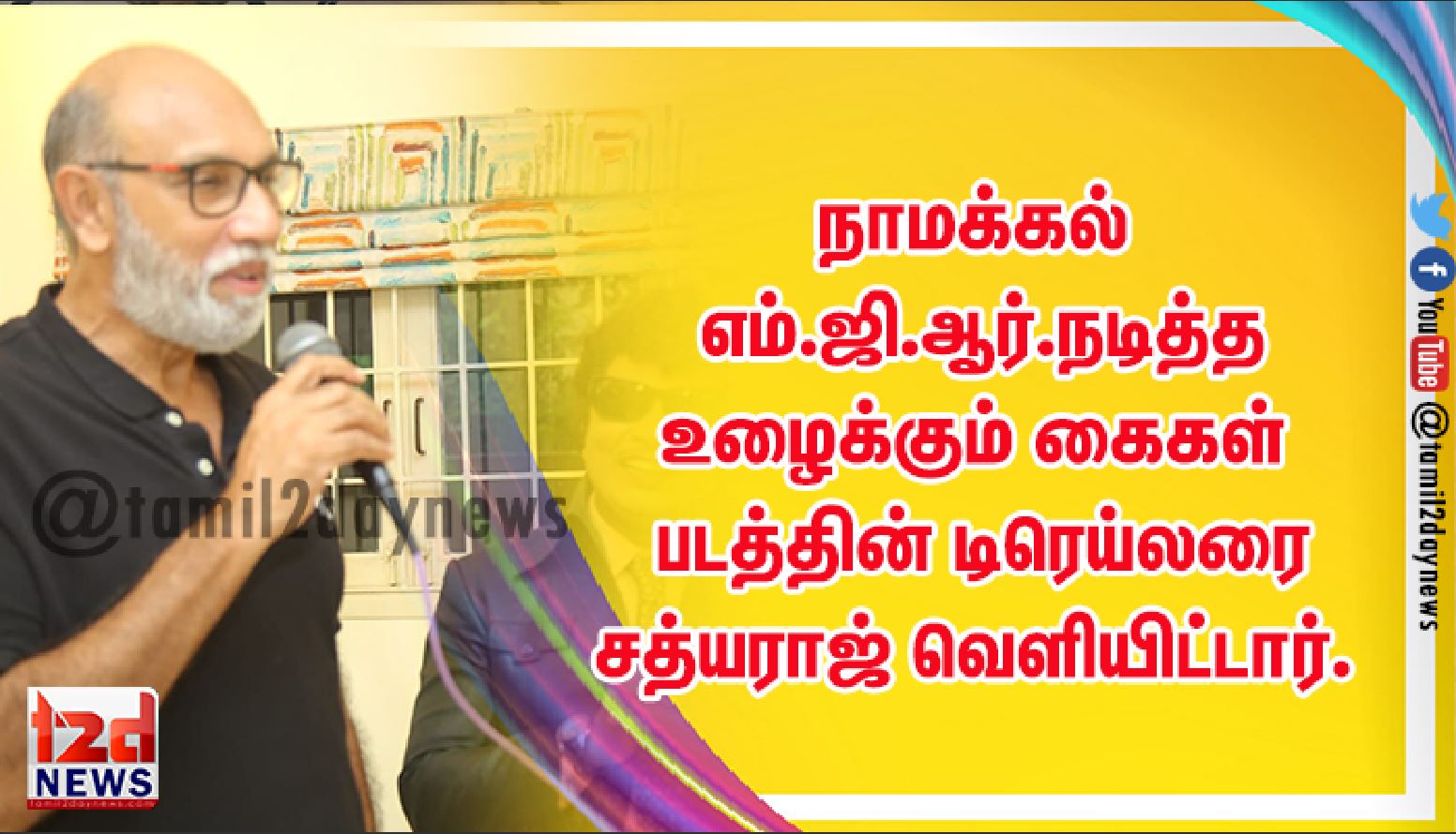 டாக்டர் குமரகுருபரன் வழங்க கே. எம்மையர் மூவீஸ் சார்பில் டாக்டர் கே. சூர்யா தயாரிப்பில் நாமக்கல் எம்.ஜி.ஆர்., நாயகனாக நடித்துள்ள ” உழைக்கும் கைகள் ” படத்தின் டிரெய்லரை சத்யராஜ் வெளியிட்டு வாழ்த்தி பேசினார்.