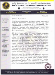 கொரோனா கால சிரமங்களைக் கடப்பதற்கு முன்னரே திரையரங்குகள் பலவிதமான இன்னல்களை தயாரிப்பாளர்கள் மீது தொடர்ந்து அடுக்கி வருகிறது. கடந்த 4 ஆண்டுகளாக VPF, Transparency, TMC, Convenience fee என பல்வேறு காரணங்களுக்காக கடுமையாக போராடி வருகிறோம். ஒன்றிலும் தீர்வு கண்டபாடில்லை. இந்த இன்னல்களுக்கு நடுவே OTT மூலம் மக்களை நேரிடையாக சென்றடைய முடியும் என்ற நிலை கிடைக்கப்பெற்ற பொழுது உண்மையில் தயாரிப்பாளர்கள் நிம்மதிப் பெருமூச்சடைந்தனர். கடன்சுமை தவிர்க்க சில படங்கள் வெளியிட்ட பொழுது தயாரிப்பாளர்களுக்கு அவ்வளவு நிம்மதி. இதற்கு திரையரங்குகள் அபயக் கூக்குரல் எழுப்பினர். அதேசமயம் சில தயாரிப்பாளர்கள் நல்ல விலை கிட்டியபொழுதும், திரையரங்கங்களை தேர்ந்தெடுத்து வெளியிட்டனர். உடனே அவர்களை தெய்வம் என்றார்கள், விளக்கேற்றியெல்லாம் நன்றி தெரிவித்தனர். எல்லோருக்கும் லாபம் என்றவுடன் மகிழ்ந்த தயாரிப்பாளர் தனது நஷ்டத்தைப் போக்க, 14 -வது நாள் OTT-ல் படத்தை வெளியிட முடிவு செய்த மறுநிமிடம், அவரை வாய்க்கு வந்தபடி திட்டினார்கள், தண்டம் வைத்தார்கள். ஆட்டைக் கடித்து, மாட்டைக் கடித்து மனிதனைக்கடித்த கதையை நேரில் கண்டோம்.