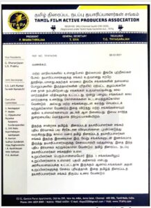 மற்ற மாநிலங்களில் உள்ளதுபோல் இல்லாமல் இங்கே புற்றீசல்கள் போல் தயாரிப்பாளர்களுக்கு சங்கம் உருவானது சற்றே துரதிஷ்டமானது.அதற்குக் காரணம் இங்கே சங்கங்களின் தலைமை பொறுப்புகளில் இருந்தவர்களின் புரிதலில் ஏற்பட்ட குழப்பங்களே என நான் நம்புகிறேன்.புது சங்கங்கள் உருவாவதென்பது கால மாற்றத்தின் விதிகளுக்கு உட்பட்டது. ஒன்று பழைய சங்கங்கள் கால மாற்றத்தை உணர்ந்து கொள்கைகளை கட்டமைத்துக்கொள்ள வேண்டும் , அல்லது மற்ற சங்கங்களுடன் கலந்து செயல்படக் கற்றுக்கொள்ள வேண்டும்.இதை விடுத்து மற்ற சங்கங்களையும் அதில் உள்ளவர்களையும் அடக்கி ஆள நினைப்பது, இவை சார்ந்த துறையையே மொத்தமாக நிர்மூலமாக்கிவிடும். இதற்கு சான்றாக TFPC புதிய நிர்வாகம் பல சீர்கேடான விஷயங்களை முன்னெடுத்து வருகிறது.இது காலம் வரை TFPC இதற்கு இணையான இரு வேறு சங்கங்களுடன் இணக்கமாக இருந்து தயாரிப்பாளர்களுக்கு சேவையாற்றி வந்துள்ளது ,இதை இந்த புதிய நிர்வாகம் கற்றுக்கொள்ள வேண்டும்.TFAPA-ல் உள்ள உறுப்பினர்கள் பெரும்பான்மையோர் இந்த 3 சங்கங்களிலும் உறுப்பினர்களாக உள்ளனர். பதவி அதிகாரம் என்பது அரசியலமைப்புக்கு உட்பட்டதாக இருக்கும் ஆனால்,சங்கங்கள் அதன் உறுப்பினர்களுக்கு சேவை புரியத்தான், இதை TFPC திரும்ப உணர வேண்டும் தமிழ்த் திரைப்படத்தயாரிப்பாளர்களுக்கு TFPC என்றுமே ஒரு தாய்ச்சங்கமாகும். சமீபத்தில் TFAPA உறுப்பினர்களை தனித்தனியாக அழைத்து மிரட்டியும் நிர்வாகிகளுக்கு அவர்களின் படங்களுக்கு இடைஞ்சல் ஏற்படுத்த முற்படுவதையும் அறிந்தேன். அவ்வாறு நடக்கும் பட்சத்தில் TFPC இன்னும் பல கூறுகளாக உடைந்து அதன் பொலிவிழக்கக் காரணமாக இந்த புதிய நிர்வாகம் இருக்கும் என்பதையும், என் உறுப்பினர்களுக்கு ஏதேனும் தீங்கு ஏற்படும் பட்சத்தில் முதல் ஆளாக நின்று அதை எதிர்ப்பேன் என்பதையும் எச்சரிக்கையாக இங்கே பதிவு செய்கிறேன்