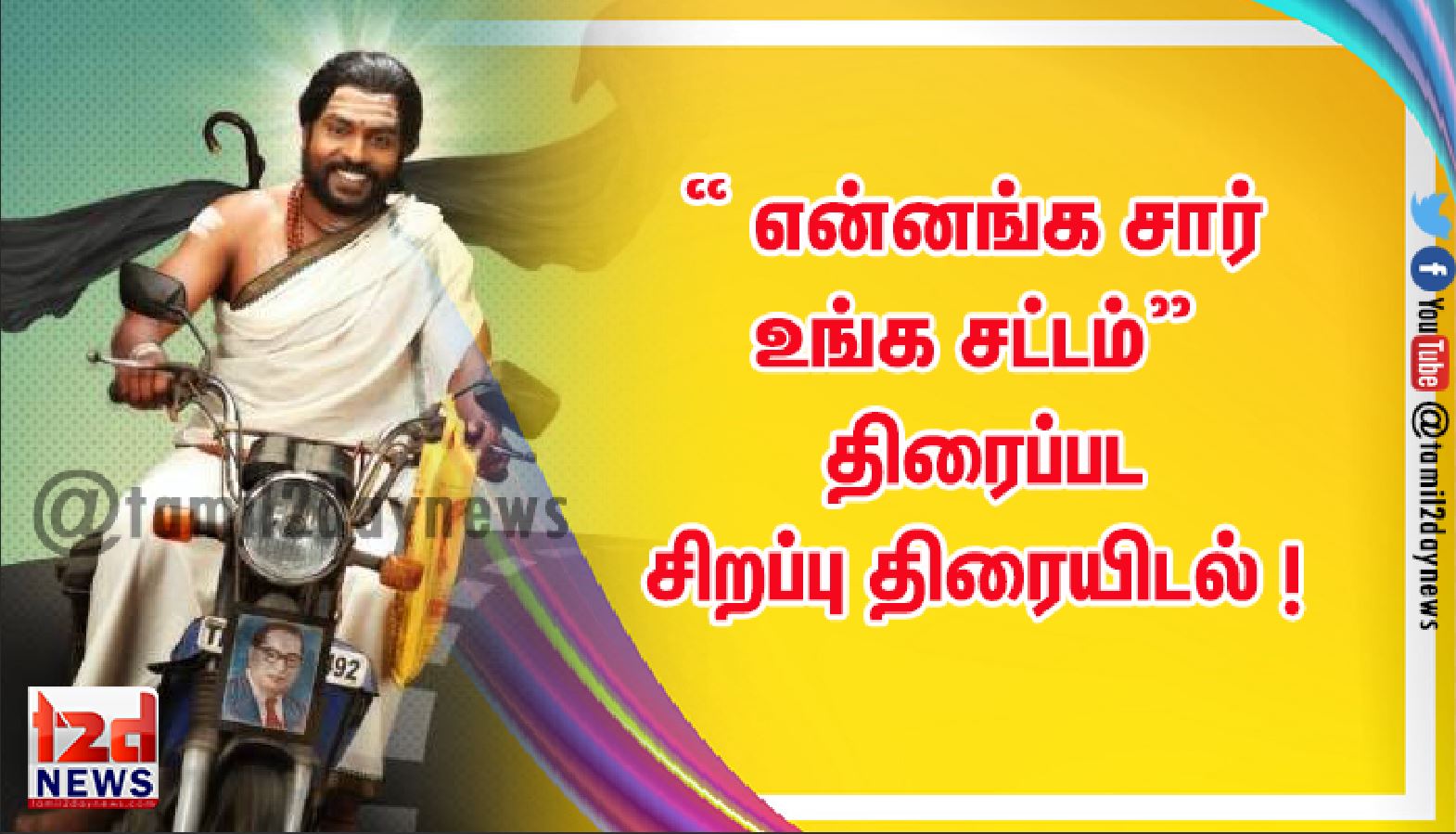 Passion Studios சுதன் சுந்தரம் மற்றும் G ஜெயராம் தயாரிப்பில் பிரபு ஜெயராம் இயக்கியுள்ள “ என்னங்க சார் உங்க சட்டம்” திரைப்படம், அக்டோபர் 29, Sonyliv தளத்தில் பிரத்யேகமாக வெளியாகிறது. படத்தின் முதல் பகுதி முழுக்க முழுக்க பொழுதுபோக்கு தன்மையுடன் கூடிய காதல் மற்றும் காமெடி கலந்ததும், இரண்டாம் பகுதி ஜாதியினால் ஏற்படும் பிரச்சனைகள் திவிரமாக சொல்வதாக படமாக்கப்பட்டுள்ளது. இப்படத்தின் சிறப்பு திரையிடல் பத்திரிக்கையாளர்களுக்காக திரையிடப்பட்டு பாராட்டுக்களை பெற்றது. இதனை தொடர்ந்து, படக்குழு பத்திரிக்கையாளர்களை சந்தித்தது.
