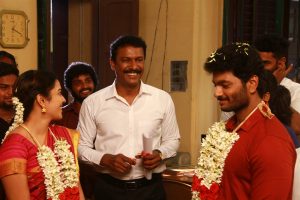 பதில்: இரு தனி நபர்களுக்குள்ளான காதல் விசயத்தை, எப்படி தமிழ்நாடே அதிரும்படியான விசயமாக்குகிறார்கள்… அதன் மூலம் எப்படி அரசியல் லாபம் அடைகிறார்கள் என்பதை ஒரு கதாபாத்திரம் மூலம் சொல்லியிருக்கிறோம். அது குறிப்பிட்ட அரசியல் தலைவரை மட்டும் சொல்லவில்லை.. அப்படிப்பட்ட எல்லா அரசியல்வாதியையும் சொல்லியிருக்கிறோம்