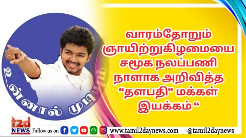 வாரம்தோறும் ஞாயிற்றுகிழமையை சமூக நலப்பணி நாளாக அறிவித்த “தளபதி” மக்கள் இயக்கம் “