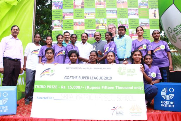 Goethe-Institut organized an Inter school Football tournament “Goethe Super League” for schools in Trichy, Madurai, Coimbatore and Chennai and all matches were held at SDAT Stadiums. Totally 64 Boys and 32 Girls teams had participated in this Tournament.