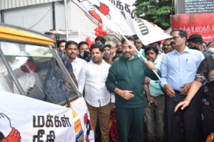 மக்கள் நீதி மய்யம் கட்சித் தலைவர் நம்மவரின் 67வது பிறந்த நாளை (நவம்பர் 7) முன்னிட்டு, நவம்பர் 1 முதல் 7 வரை நாள் ஒன்றுக்கு ஒரு லட்சம் என்ற வகையில் மொத்தம் 7 லட்சம் பேருக்கு தமிழகம் முழுவதும் அன்னதானம் வழங்கும் திட்டமான `ஐயமிட்டு உண்’ அன்னதானத் திட்டத்தைச் செயல்படுத்த முடிவுசெய்து, இன்று காலை 11 மணியளவில் `நம்மவர்’ திரு.கமல் ஹாசன் அவர்கள் கொடியசைத்து திட்டத்தைத் துவக்கிவைத்தார்.