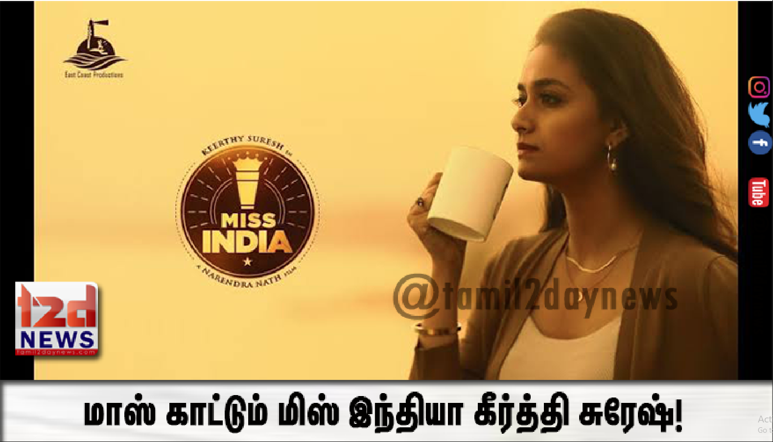 மிஸ் இந்தியா படத்தின் மூலம், ஒரு தெரியாத நாட்டில் இருக்கும் தன்னைத் தானே செதுக்கிய ஒரு பெண்ணின் ஊக்கமிகு பயணத்துக்கு நம் அனைவரையும் கீர்த்தி சுரேஷ் அழைத்துச் செல்கிறார். இப்படம் தமிழ் மற்றும் மலையாளம் ஆகிய மொழிகளிலும் டப்பிங் செய்யப்படுகிறது.