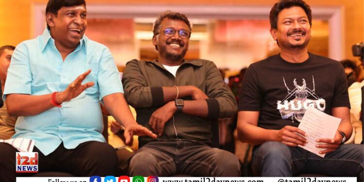 இத்தனை நாட்களாக காமெடி கதாபாத்திரத்தில் நடித்தேன், ஆனால் இந்தப் படம் எனக்கு இன்னொரு உருவத்தைக் கொடுத்துள்ளது, இந்தக் கதையை முதலில் உதய் சார் தான் என்னைக் கேட்கச் சொன்னார் , அதன் பின் கதையைக் கேட்டேன். அவர் முதலில் என்னிடம் சொன்னது ஒரு காட்சி கூட உங்களுக்கு நகைச்சுவை இல்லை என்றார், முதலில் நான் கொஞ்சம் பயந்தேன், ஆனால் முழு கதையைக் கேட்டதும் நான் கண்டிப்பாக நடிக்கிறேன் என ஒப்புக்கொண்டேன். இயக்குநர் மாரி செல்வராஜிற்கு ஒரு 30 படம் செய்த இயக்குநருக்கு உள்ள அனுபவம் இருந்ததை நான் அறிந்தேன், அவரது வலியை நடிகர்களுக்கு சுலபமாக உணரவைத்து விடுவார், என்னை முழுதாக மாற்றி இருக்கிறார். சிரிக்கவே கூடாது என்று சொல்லிவிட்டனர், அது கஷ்டமாகத்தான் இருந்தது. இப்போது வரும் பாராட்டுக்கள் மகிழ்ச்சியாக உள்ளது. படப்பிடிப்பு ஜாலியாக இருக்கும் ஆனால் மாரி செல்வராஜ் அவர் குறிக்கோளை விட்டு விலகவே இல்லை. படம் பார்த்து அனைவரும் எனக்கு போன் செய்தனர், முதலமைச்சர் ஸ்டாலின் சார் எனக்கு போன் செய்து வாழ்த்துக் கூறினார். சூப்பர்ஸ்டார் ரஜினிகாந்த் போன் செய்தார், எனக்கு அது மிகவும் மகிழ்ச்சியாக இருந்தது. இப்படி ஒரு வாய்ப்பை இழக்க பார்த்தேன் அதற்கு உதய் சாருக்கு தான் நன்றி கூற வேண்டும். படப்பிடிப்பு முடிந்தது போக நான் பாடல் பாடியதும் ஒரு நல்ல அனுபவம் தான், இந்த படத்தை உலகத்தில் உள்ள அனைவரும் பாராட்டி வருகின்றனர். மொத்த படக்குழுவும் பெரும் உழைப்பைக் கொடுத்துள்ளனர், எங்கள் அனைவரையும் தாண்டி ஒரு படி மாரி செல்வராஜ் உழைப்பைக் கொடுத்தார். இந்தப் படம் அனைவருக்கும் பிடித்துள்ளது, பத்திரிக்கையாளர் அனைவருக்கும் எனது மனமார்ந்த நன்றிகள். நடிகர் உதயநிதி ஸ்டாலின் பேசியதாவது..