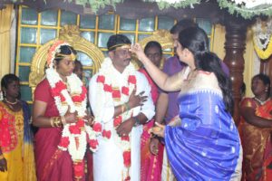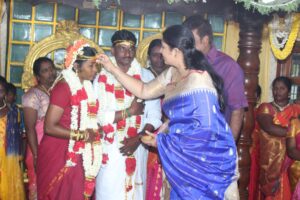 நேற்று தேமுதிக கழக பொருளாளர் பிரேமலதா விஜயகாந்த் வந்திருந்து மணமக்களை வாழ்த்தினார்.  தேமுதிககட்சியை சேர்ந்த பலரும் திருமணத்தில் பங்கேற்றனர்.