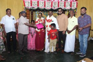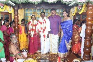 மேலும் நடிகர்கள் பிக் பாஸ் புகழ் ஆரி, செந்தில், சௌந்தர்ராஜா, ‘லொள்ளு சபா’ ஜீவா, எம் எஸ் பாஸ்கர்,சம்பத் ராம், சண்முக பாண்டியன், ரமேஷ் கண்ணா, ‘விஜய் டிவி’ புகழ் அமுதவாணன், ஹரிஷ் இயக்குனர்கள் பாக்யராஜ் , ஆர் வி உதயகுமார், விக்ரமன், சுப்ரமணிய சிவா, சரவணன், பார்த்திபன் தேசிங்கு, தயாரிப்பாளர் கே ஆர் பிலிம்ஸ் சரவணன் மற்றும் ஜாகுவார் தங்கம், சினிமா மக்கள் தொடர்பாளர்கள் மற்றும் பத்திரிகையாளர்கள் ஆகியோர் கலந்து கொண்டு மணமக்களை வாழ்த்தினர்.
