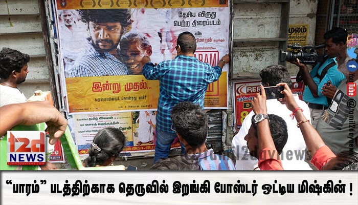 சொன்னதை செய்த மிஷ்கின் பிரமிப்பில் ஆழ்ந்த திரையுலகம். சினிமா மீது தீராத காதல் கொண்டவர் இயக்குநர் மிஷ்கின். தனது தரமிக்க படங்கள் மூலம் தமிழ் சினிமாவின் தனித்தன்மை மிக்க இயக்குநர் வரிசையில் இடம் பிடித்திருப்பவர் இயக்குநர் மிஷ்கின். இவரது படங்கள் பாக்ஸ் ஆபிஸில் கலக்கும் அதே நேரத்தில் திரைக்கல்லூரிகளில் பாடங்களாக விவாதிக்கப்பட்டும் வருகின்றது. சினிமாவை உயிராக நேசிக்கும் அவர் நல்ல படங்கள் வரும் போது முதல் ஆளாக நேசிக்கவும் பாராட்டவும் தவறுவதில்லை. “பாரம்” படத்தின் பத்திரிக்கையாளர் சந்திப்பில் “பாரம்” படம் வெளியாகும்போது நான் விளம்பரத்திற்காக தெருவில் இறங்கி போஸ்டர் ஒட்டுவேன் எனக்கூறியபடியே அவர் தற்போது செய்து காட்டியுள்ளார். சினிமா மீதான அவரது அளவற்ற நேசிப்பு அனைவரையும் ஆச்சர்யத்தில் ஆழ்த்தியுள்ளது. தேசிய விருதை வென்ற “பாரம்” திரைப்படம் இயக்குநர் ப்ரியா கிருஷ்ணசுவாமி இயக்கத்தில் 2020 பிப்ரவரி 21 அன்று வெளியாகி திரையரங்கில் வெற்றிகரமாக ஓடிக்கொண்டிருக்கிறது.
