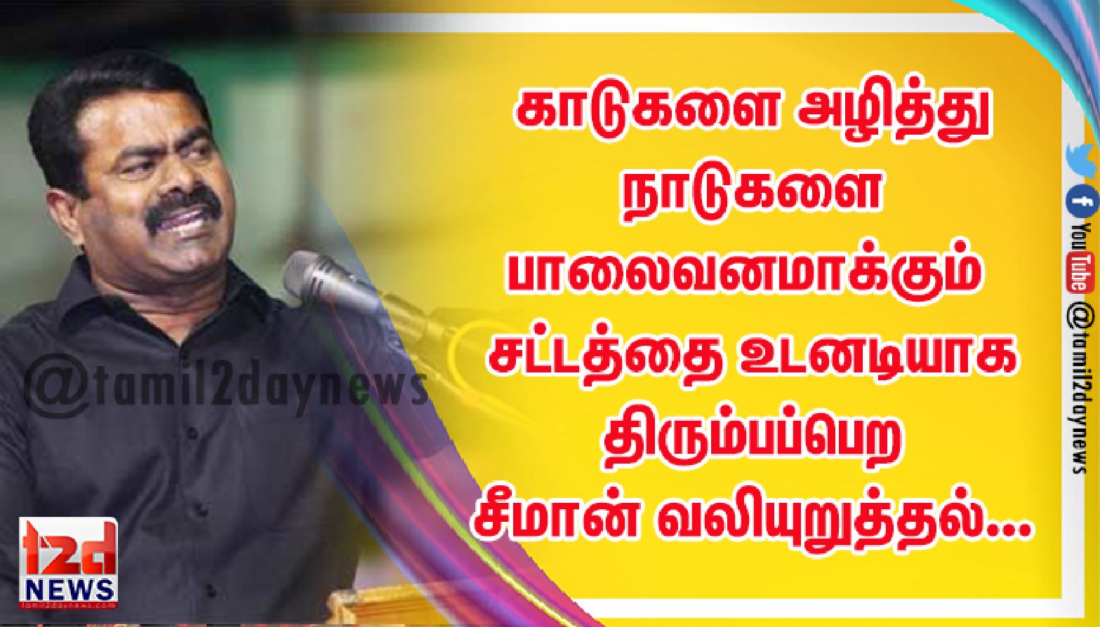 *காடுகளை அழித்து நாட்டினைப் பாலைவனமாக்கும் வன பாதுகாப்பு சட்டத்திருத்த வரைவு – 2021ஐ ஒன்றிய அரசு உடனடியாகத் திரும்பப் பெறவேண்டும்! – சீமான் வலியுறுத்தல்* | நாம் தமிழர் கட்சி