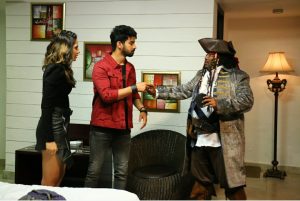 மஹத், ஐஸ்வர்யா தத்தா நடிக்கும் “கெட்டவன்னு பேர் எடுத்த நல்லவன்டா “ படத்தின் படப்பிடிப்பு மீண்டும் ஆரம்பிக்கப்பட்டதில் படக்குழு உற்சாகத்தில் உள்ளது. படத்திற்கு மேலும் பலம் சேர்க்கும் வகையில் ரசிகர்களிடம் ஆச்சர்யம் ஏற்படுத்தும் அட்டகாசாமான செய்தி ஒன்றை வெளியிட்டிருக்கிறது படக்குழு. தற்போதைய தமிழ் சினிமாவின் காமெடி நாயகனாக வலம் வரும் யோகி பாபு, இப்படத்தில் புதையலை தேடும் கடற்கொள்ளையனான ப்ளாக் ஸ்பாரோ ( Black Sparrow) வாக நடிக்கிறார். இதில் சுவாரஸ்யம் என்னவென்றால் படத்தின் முழுக்கதாப்பத்திரங்களும் ஒரு ரிசாட்டிற்குள் இந்த வித்தியாசமான கதாப்பாத்திரத்திடம் மாட்டிக்கொண்டு முழிப்பது பெரும் காமெடி கலாட்டாவா அமைக்கப்பட்டிருக்கிறது.