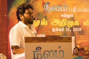 நீலம் பதிப்பகத்தின் தொடக்க விழா மற்றும் நீலம் பதிப்பகம் சார்பில் வெளியிடப்பட்டுள்ள நூல்கள் அறிமுக விழா சென்னை ஒய்.எம்.சி.ஏ மைதானத்தில் உள்ள பக்ஸ் தியேட்டரில் நேற்று (12/01/2020) நடைபெற்றது.