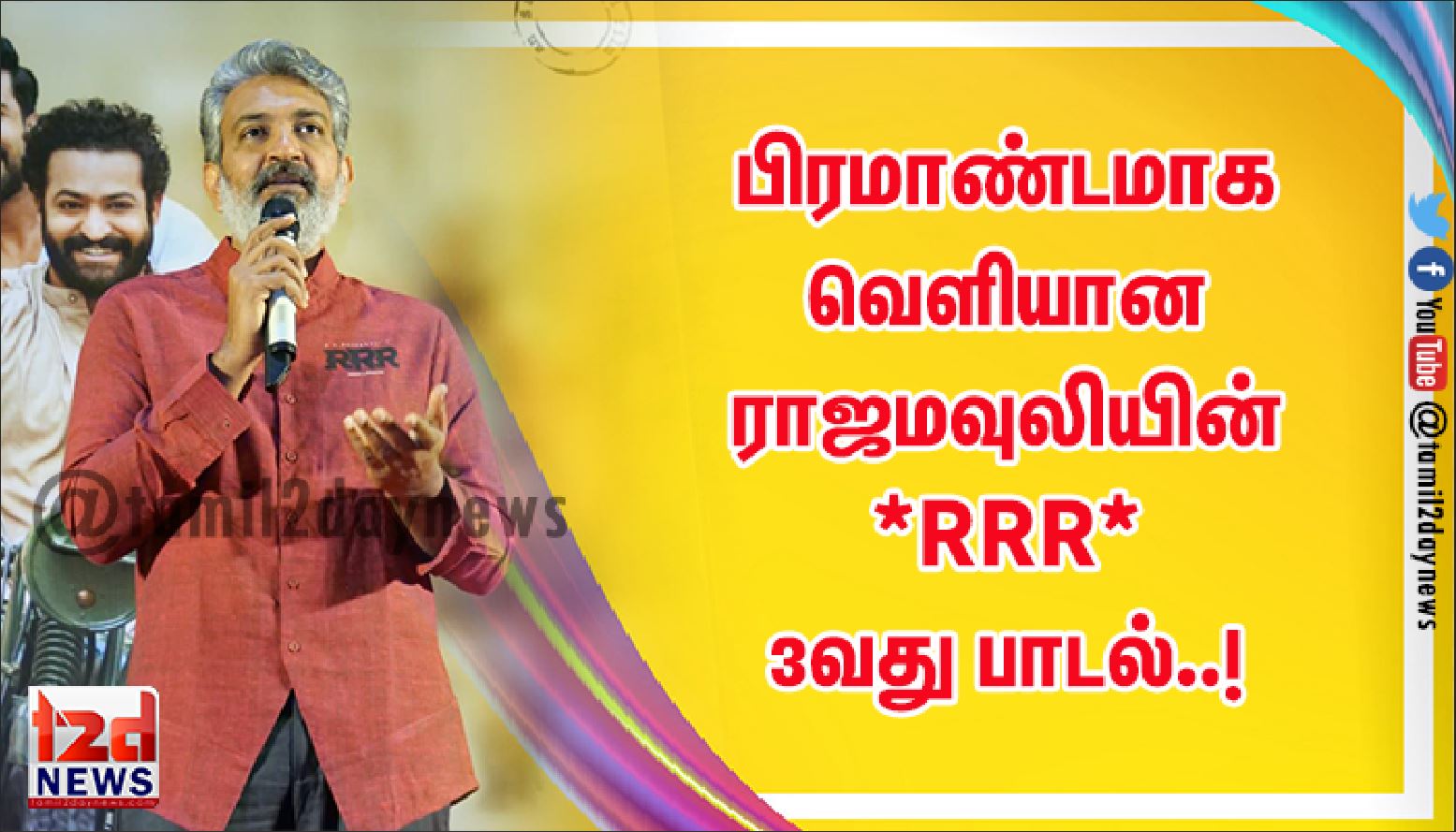 Lyca Productions சார்பில் திரு. சுபாஸ்கரன் அல்லிராஜா & DVV Entertainment சார்பில் திரு. தானய்யா இணைந்து வழங்கும், இந்திய திரைத்துறையில் மொழி மாநில எல்லைகள் கடந்து இந்தியாவில் உள்ள அனைத்து ரசிகர்களும் எதிர்பார்க்கும் இந்த வருடத்தின் மிகப்பிரமாண்ட படைப்பு RRR ( இரத்தம் ரணம் ரௌத்திரம்) திரைப்படம் ஆகும். பாகுபலி திரைப்படத்தின் உலகளாவிய வெற்றிக்கு பிறகு இயக்குநர் ராஜமௌலி இயக்கத்தில் தெலுங்கு சூப்பர் ஸ்டார்களான ஜூனியர் என் டி ஆர், ராம்சரண் ஆகியோர் இணைந்து நடித்திருக்கும் RRR திரைப்படம் தெலுங்கு, தமிழ், கன்னடம், மலையாளம், இந்தி மொழிகளில் வெளியாகிறது. இப்படத்தில் இந்திய திரைத்துறையின் பல மொழிகளில் இருந்தும் பெரும் நட்டத்திரங்கள் இணைந்து நடித்துள்ளனர். பாலிவுட் நாயகி ஆலியா பட், நாயகன் அஜய் தேவ்கன், நடிகர் சமுத்திரகனி உட்பட பல முன்னணி நட்சத்திரங்கள் இப்படத்தில் இணைந்து நடித்துள்ளனர்.