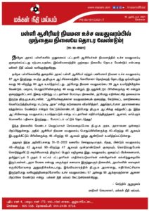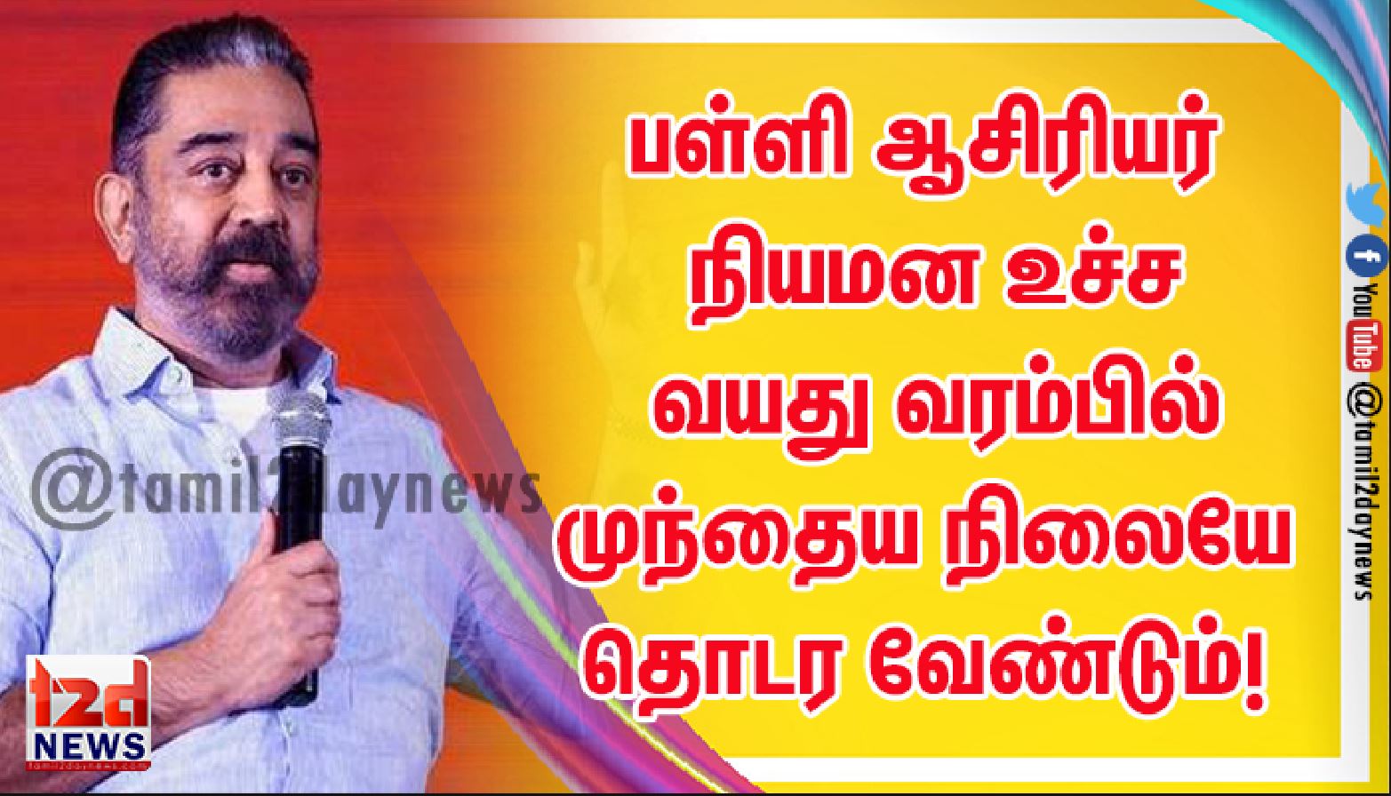 தமிழக அரசுப் பள்ளிகளில் முதுகலைப் பட்டதாரி ஆசிரியர்கள் நியமனத்தில் உச்ச வயதுவரம்பு குறைக்கப்பட்டது ஏற்புடையதல்ல. இவ்விவகாரத்தில் முந்தைய நிலையே தொடர வேண்டும் என்பதை மக்கள் நீதி மய்யம் வலியுறுத்துகிறது.