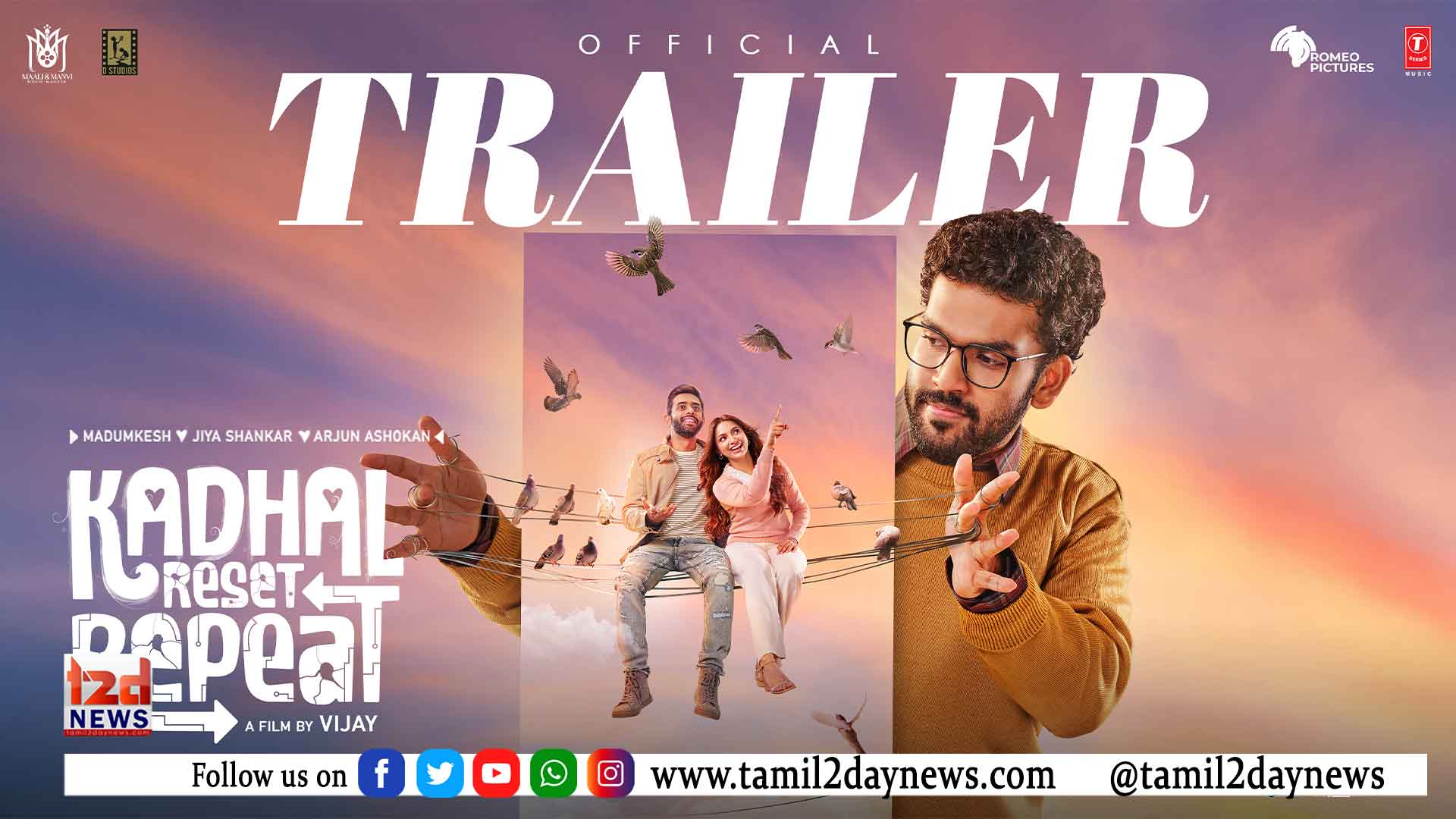 மாலி & மான்வி மூவி மேக்கர்ஸ் (Maali Manvi Movie Makers), டி-ஸ்டுடியோஸ் (D Studios), சன்னி டென்வி (Sunny Denvi) டென்வி புரொடக்ஷன் (Denvi Productions) ஆகியோர் தயாரிப்பில், பிரபா பிரேம்குமார் இணை தயாரிப்பில், முன்னணி இயக்குநர் விஜய் இயக்கத்தில் உருவாகியுள்ள ‘காதல் ரீசெட் ரிபீட்’ திரைப்படத்தின் டிரெய்லர் அதிகாரப்பூர்வமாக வெளியிடப்பட்டுள்ளது.