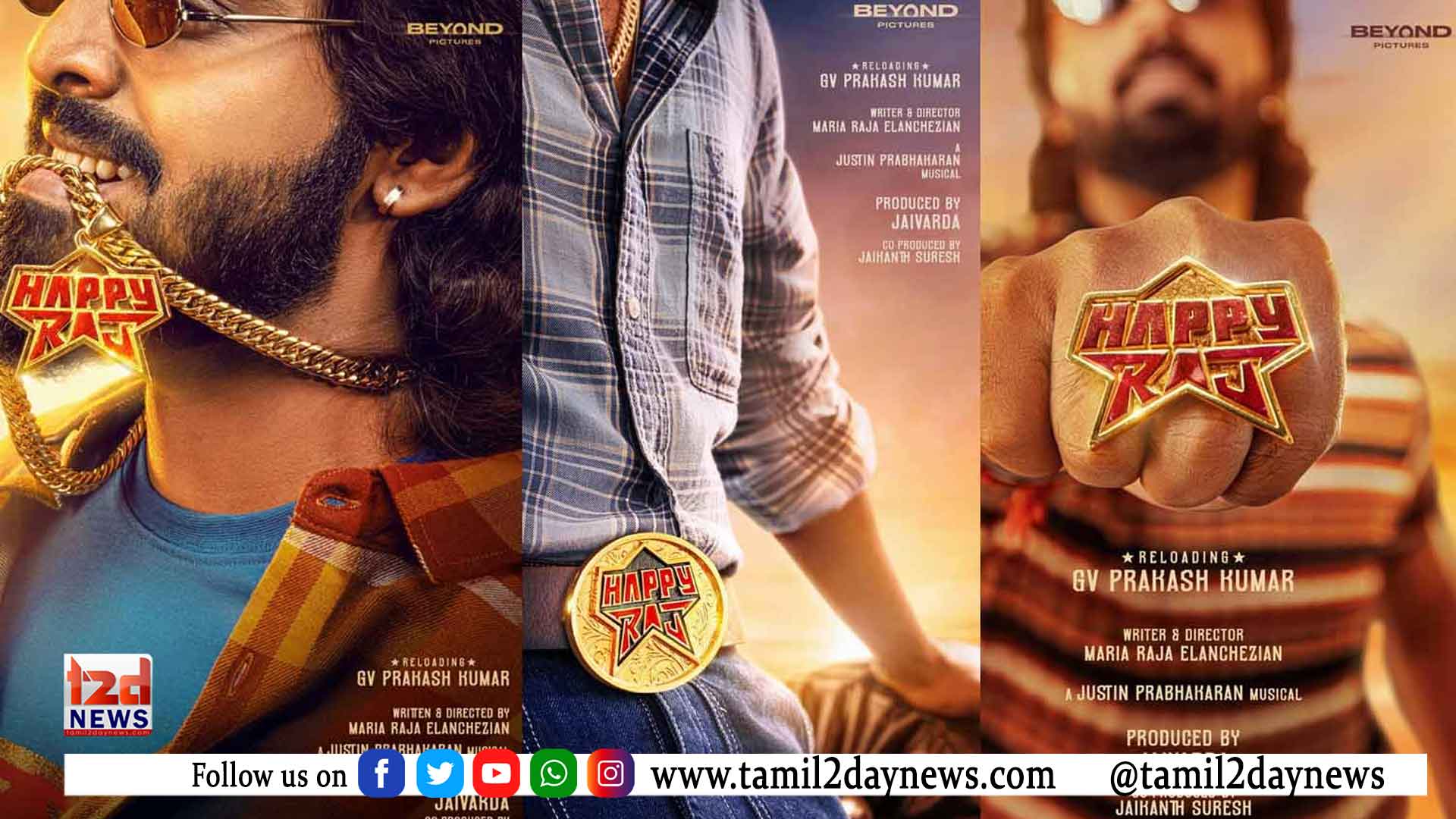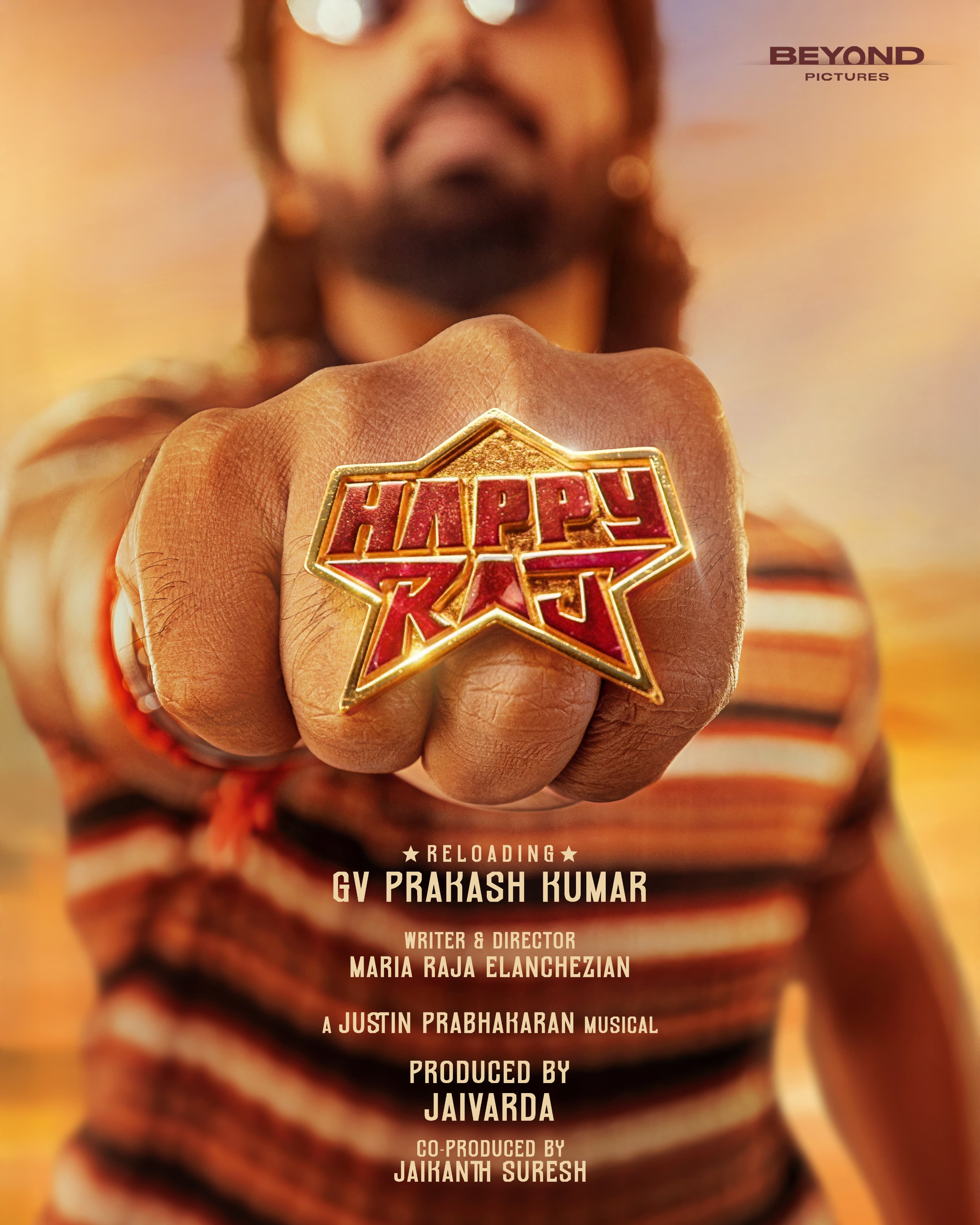 Beyond Pictures தயாரிப்பாளர் ஜெய்வர்தா, தமிழ் சினிமா ரசிகர்களுக்கு ஜனரஞ்சகமான படைப்புகளை வழங்க வேண்டும் என்ற நோக்கத்துடன் தமிழ் திரைப்படத் துறையில் தனது பயணத்தை ஆரம்பித்துள்ளார். பல்வேறு திட்டங்கள் தற்போது தயாரிப்பில் உள்ளன; அவற்றின் அதிகாரப்பூர்வ அறிவிப்புகள் விரைவில் வெளியாகும். இதற்கிடையில், சமீபத்தில் ஜி.வி. பிரகாஷ் குமார் நடிக்கும், மரியா இளஞ்செழியன் இயக்கும் “ப்ரொடக்ஷன் நம்பர் 1” படத்தை அறிமுகப்படுத்தினர். இப்போது அந்த படத்தின் தலைப்பை அதிகாரப்பூர்வமாக “ஹேப்பி ராஜ்” என அறிவித்துள்ளனர்.