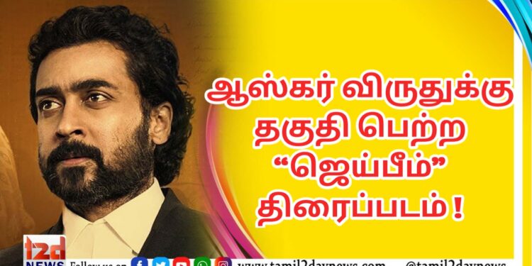 ஜெய்பீம் திரைப்படம் 90 களில் தமிழ்நாட்டில் நடந்த ஒரு உண்மை சம்பவத்தை வைத்து உருவாக்கப்பட்ட தமிழ் மொழித் திரைப்படமாகும். இது இருளர் பழங்குடியினத்தைச் சேர்ந்த ராஜகண்ணு மற்றும் செங்கேனி ஆகியோரின் கதையை விவரிக்கிறது. ராஜகண்ணு உள்ளூர் காவல்துறையினரால் செய்யாத குற்றத்திற்கு காவல் நிலையத்தில் சித்திரவதைக்கு உள்ளாக்கப்படும் சம்பவத்தால், அவர்களின் வாழ்க்கையை தலைகீழாக மாறுகிறது. இயக்குநர் T.J.ஞானவேல் எழுதி இயக்கியுள்ள இப்படத்தை 2டி என்டர்டெயின்மென்ட் நிறுவனம் சார்பில் ஜோதிகா மற்றும் சூர்யா தயாரித்துள்ளனர். இப்படத்தில் சூர்யா மற்றும் லிஜோமோல் ஜோஸ், மணிகண்டன், ரஜிஷா விஜயன், பிரகாஷ் ராஜ், ராவ் ரமேஷ் இவர்களுடன் மற்றும் பலர் துணை வேடங்களில் நடித்துள்ளனர்.ஆஸ்கார் விருதுக்கான பரிந்துரை வாக்களிப்பு ஜனவரி 27, 2022 வியாழன் அன்று தொடங்குகிறது, பரிந்துரைகள் முடிவு பிப்ரவரி 8, 2022 செவ்வாய் அன்று அறிவிக்கப்படும். விருது வழங்கும் விழா ஞாயிற்றுக்கிழமை, மார்ச் 27, 2022 அன்று ஹாலிவுட் & ஹைலேண்டில் உள்ள டால்பி®️ தியேட்டர் ஹாலிவுட் மற்றும் ஏபிசி மற்றும் உலகெங்கிலும் 200 க்கும் மேற்பட்ட பிராந்தியங்களில் நேரடியாக ஒளிபரப்பப்பட திட்டமிடப்பட்டுள்ளது.