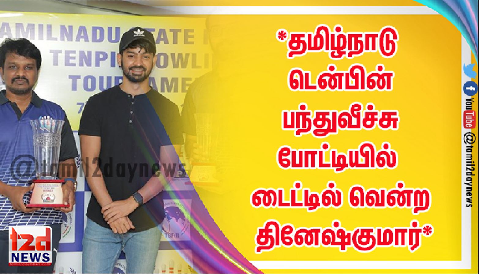 தமிழ்நாடு டென்பின் பந்துவீச்சு சங்கம் சார்பில் முதன்முதலாக ஆண்களுக்கான மாநில தரவரிசையிலான டென்பின் பந்துவீச்சு போட்டி ஏப்ரல்-7 முதல் 10ஆம் தேதி வரை சென்னை எழும்பூர் மார்ஷல் சாலையில் உள்ள டியூ பவுலில் (DU Bowl) நடைபெற்றது